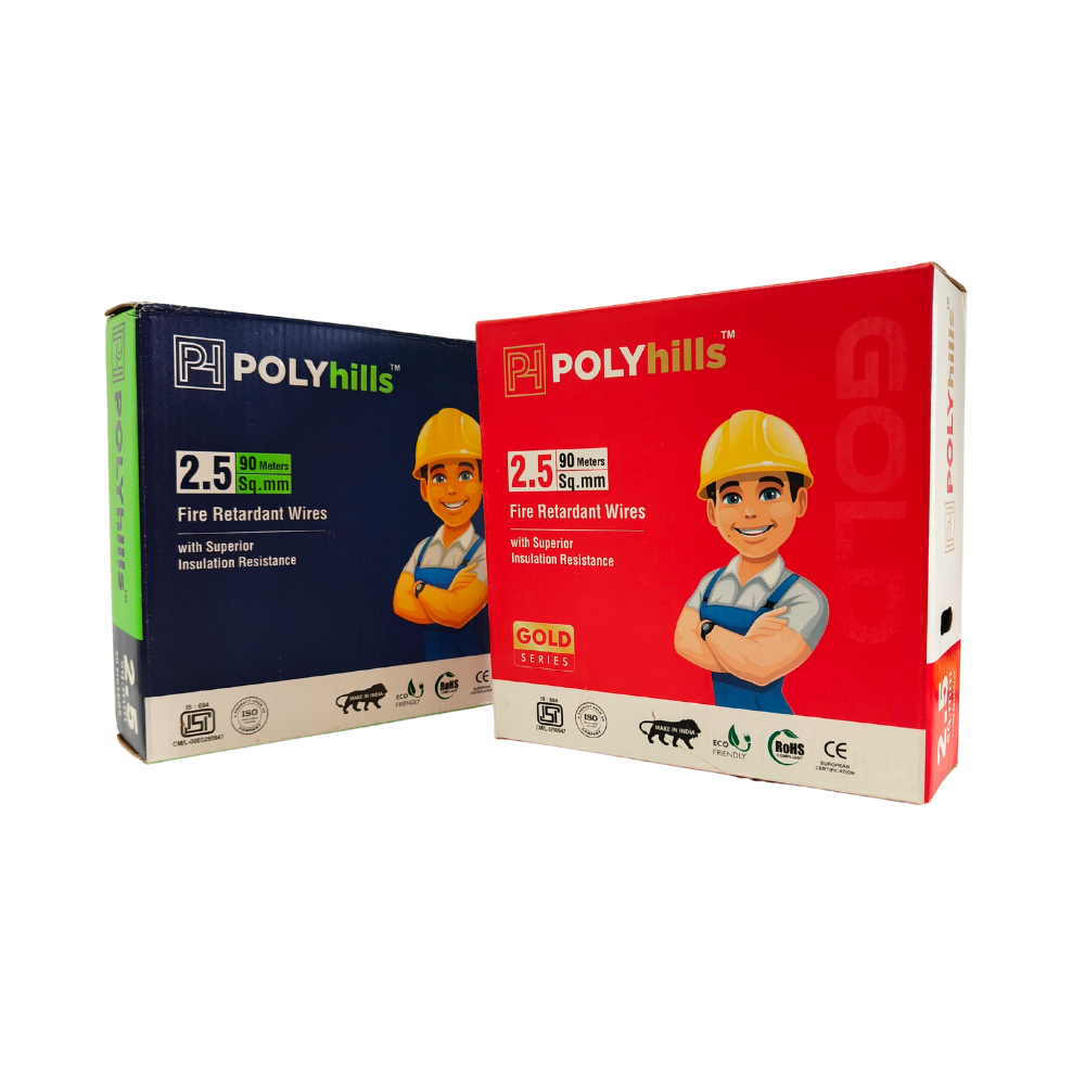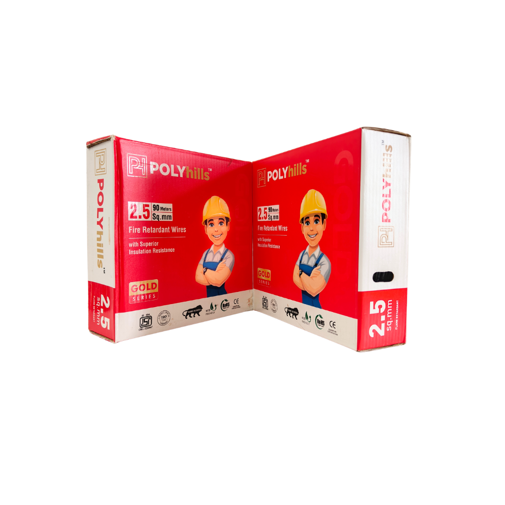 The Polyhills Gold Series is a high-safety electrical wire with Superior Insulation Resistance. It features Fire Retardant technology designed to prevent the spread of flames during electrical faults.